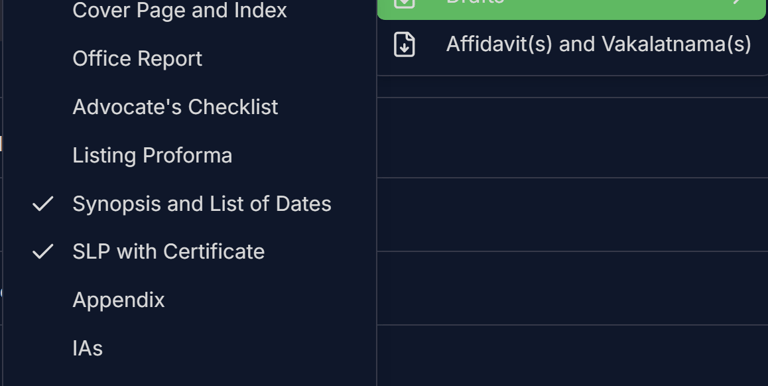 Drafto helps prepare every part of the SLP Paperbook, including drafts, annexures, proforma and checklists.